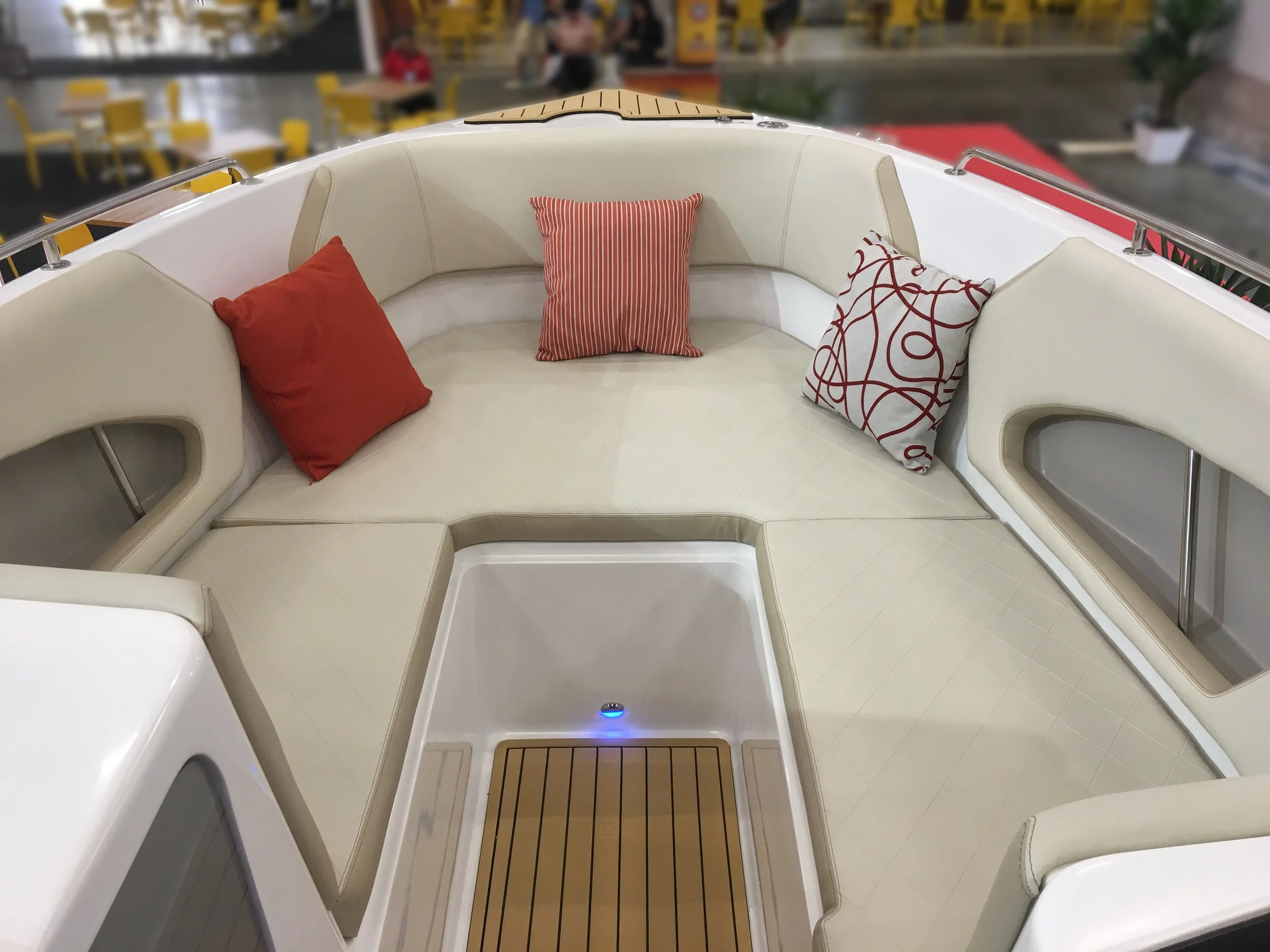 The Real 270 combines versatility, performance, and comfort, making it an excellent choice for family outings, leisure cruising, or water sports. With its innovative design, ergonomic features, and spacious layout, this model offers a perfect balance of functionality and style. The Real 270 includes a practical cockpit with ample seating, a convertible canopy, and thoughtful amenities like a stainless-steel sink, cooler, and retractable ladder. Its lightweight yet durable construction, complemented by advanced materials and engineering, ensures smooth handling and fuel efficiency. Whether exploring new destinations or enjoying a day on the water, the Real 270 delivers a reliable and enjoyable experience for up to 13 passengers.