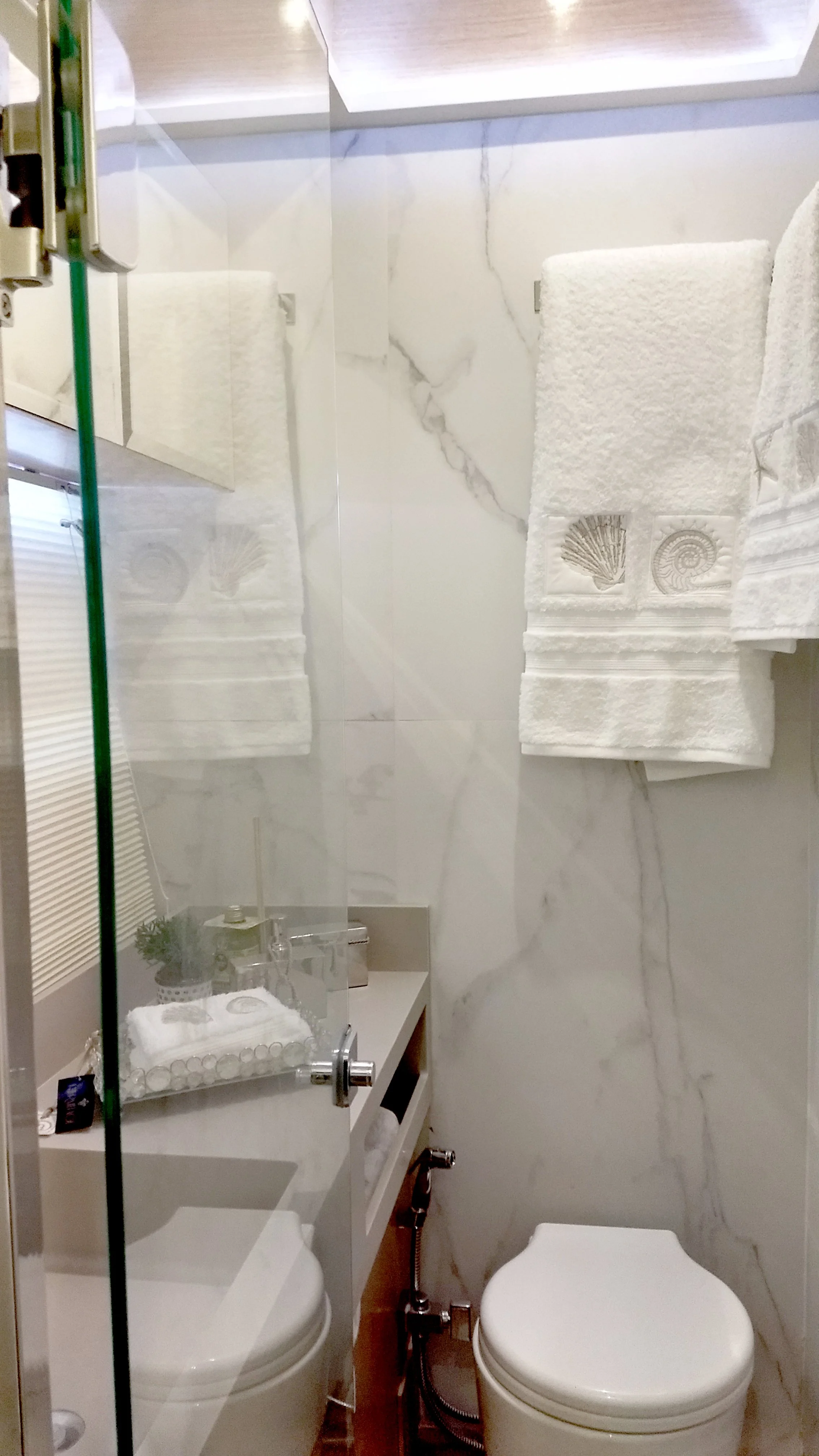 Freshwater shower (with hot and cold mixer) and saltwater shower;