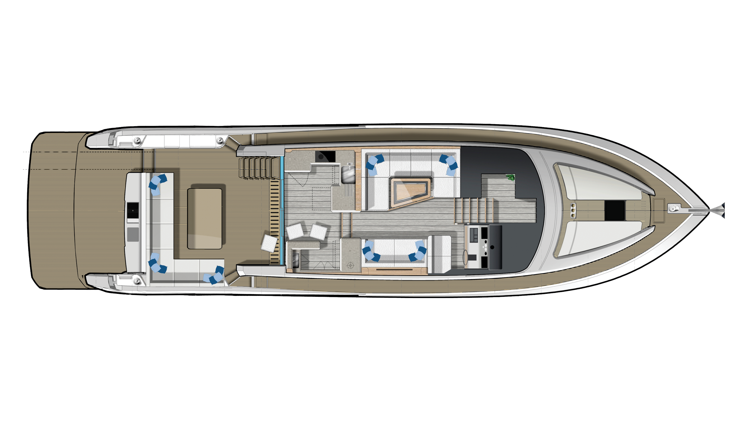 Thermo-acoustic and fireproof insulation on the ceiling, aft deck access, and salon floor;